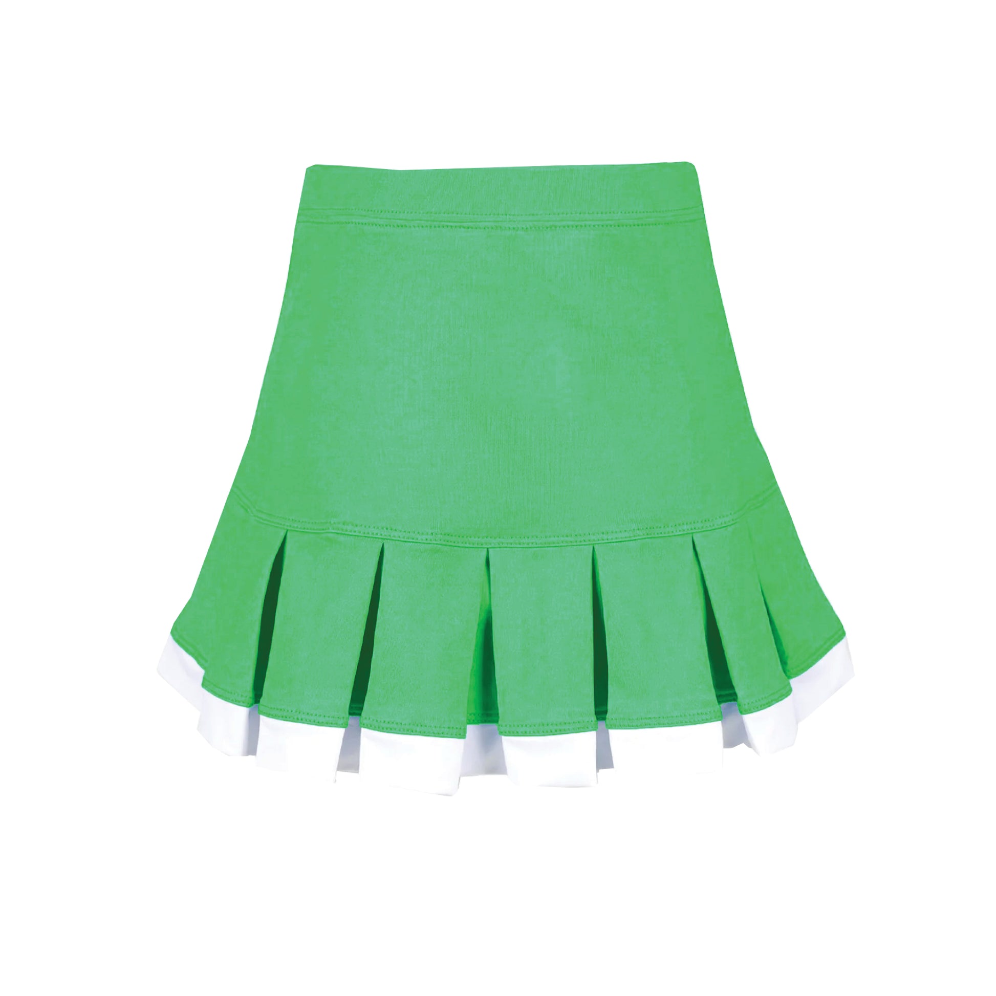 Classic green skirt, pretty pleats all around with white trim, built-in compression shorts. Great for tennis, golf, cheer & pickleball. Check out the matching tennis jacket!